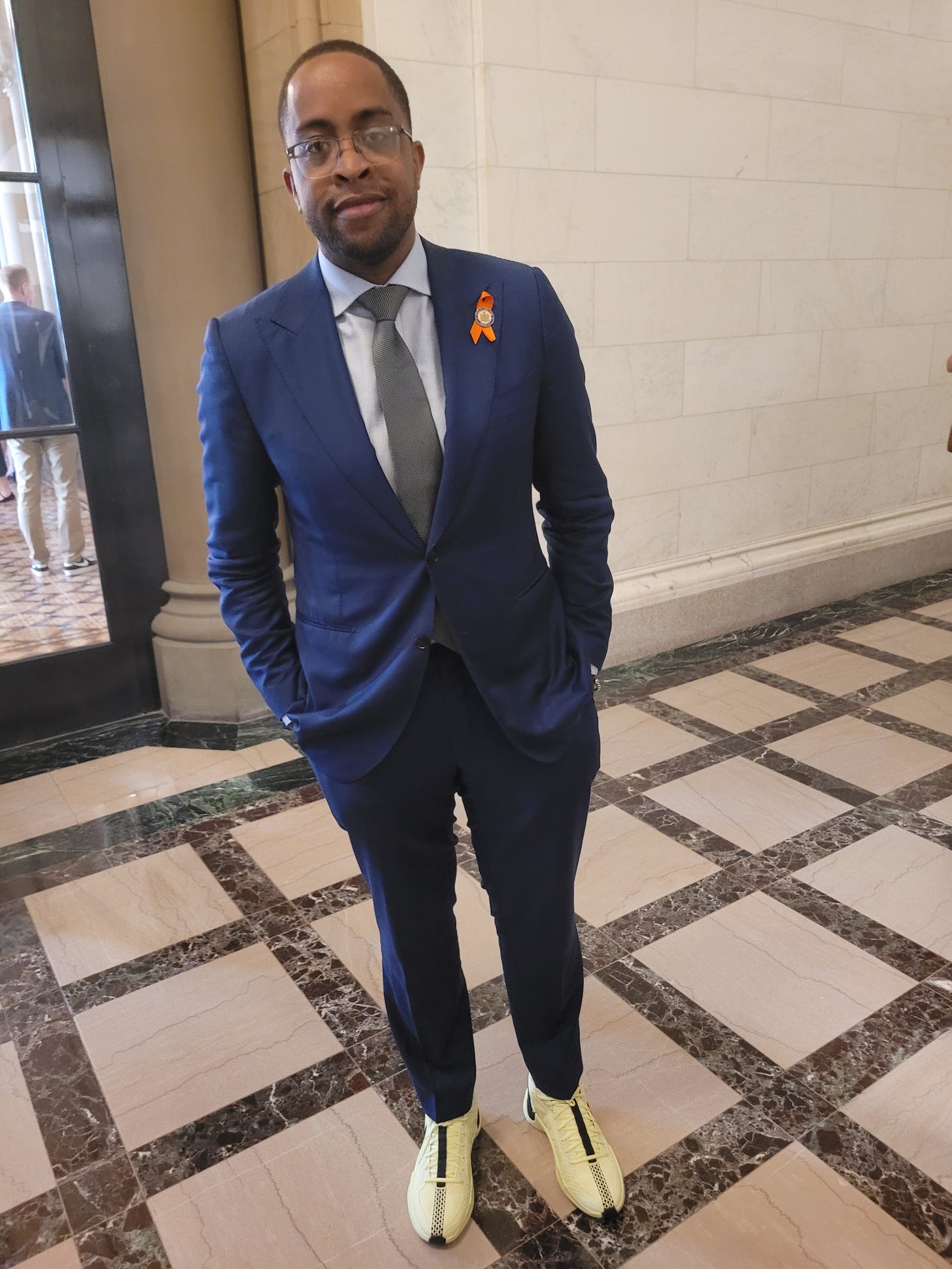 He kept doing it. Started switching it up... Dunks, White Cement 3s, whatever felt right. Other senators started following his lead. His friend Senator Jamal Bailey from the Bronx, also a sneakerhead, started showing out with his rotation. Staff members joined in. People who clean the building brought their heat.